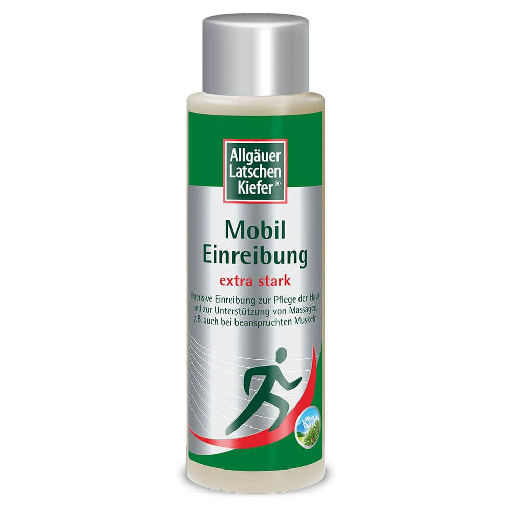 Eine Massage mit Allgäuer Latschenkiefer Mobil Einreibung extra stark pflegt die Haut und erfrischt, lockert und unterstützt Massagen, z.B. auch bei beanspruchten Muskeln. Beine, Arme und Rücken einreiben und trocken massieren. Hinweise: Behandelten Hautbereich nicht abdecken z.B. durch Verbände oder Kompressen. Nicht für Feuchtumschläge verwenden. Nicht in die Augen und auf Schleimhäute bringen. Anwendung nur äußerlich auf unverletzter Haut. Nicht für Säuglinge und Kleinkinder verwenden. Nicht bei empfindlicher und zu Ekzemen neigender Haut verwenden. Nicht anwenden bei Überempfindlichkeit gegenüber Korbblütler: Enthält Arnika