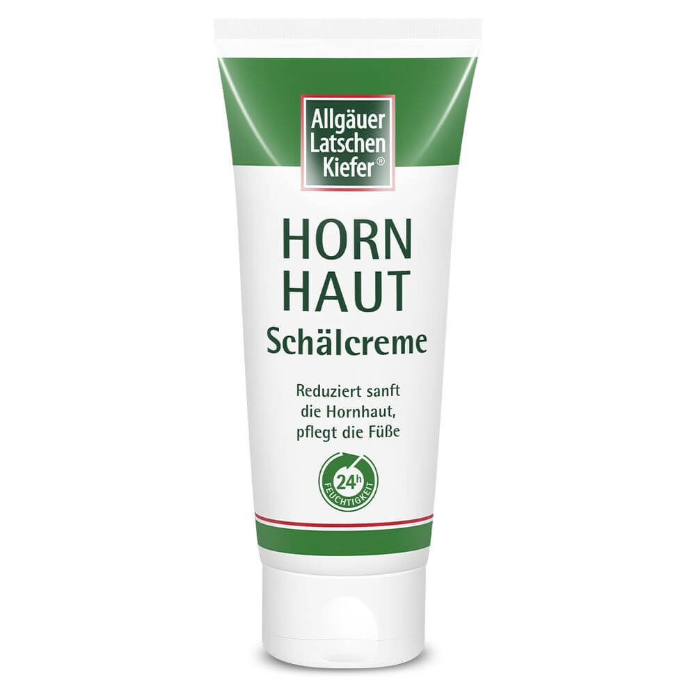Die Allgäuer Latschenkiefer Hornhaut Schälcreme mit 10% Urea und einer innovativen Wirkstoffkombination schält sanft die Hornhaut.