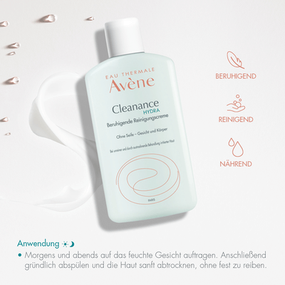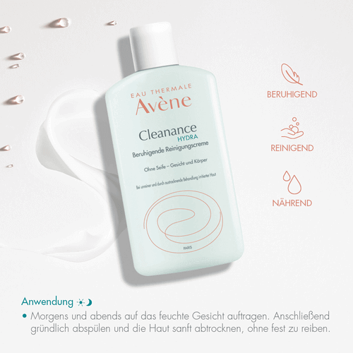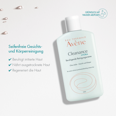 Dank ihrer rückfettenden Eigenschaften verleiht die Cleanance HYDRA Beruhigende Reinigungscreme ein angenehmes Hautgefühl. Seifenfrei.
