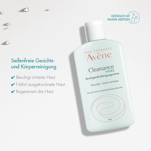 Die Cleanance HYDRA Beruhigende Reinigungscreme reinigt sanft empfindliche, durch medizinische Akne-Behandlung ausgetrocknete und gereizte Haut.