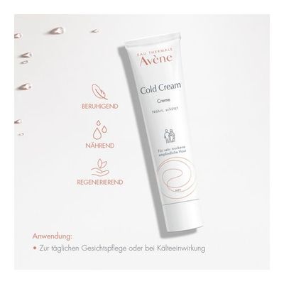 Die Avène Cold Cream Creme schützt die Haut durch den hohen Anteil an weißem Bienenwachs vor dem Austrocknen und macht die Haut wieder weich und geschmeidig. Die leicht duftende Textur wirkt rückfettend und bildet einen Kälteschutz bis zu -10° C (z.B bei Couperose-/Rosacea-Patienten). Die Creme kann auch als Ergänzung bei Neurodermitis, trockenen Ekzemen, Psoriasis, Ichthyosis, Flechten verwendet werden.