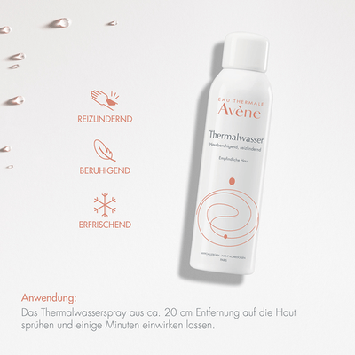 Das Thermalwasserspray aus ca. 20 cm Entfernung auf die Haut sprühen und einige Minuten einwirken lassen.