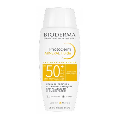 Photoderm MINERAL Fluide besteht zu 100% aus mineralischen Filtern und bietet einen sehr hohen UVA/UVB-Schutz und garantiert eine ausgezeichnete Verträglichkeit für empfindliche und allergische Haut.