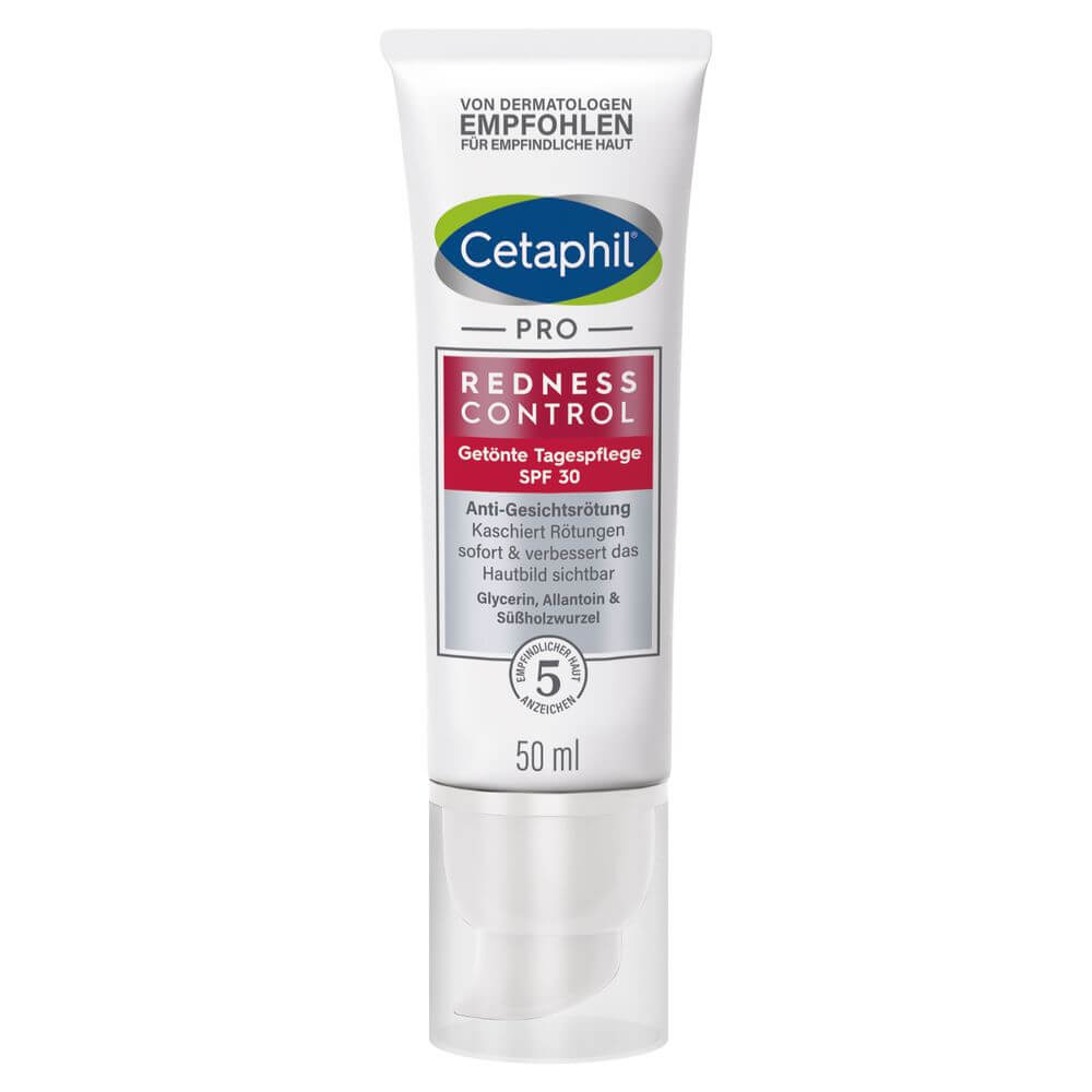 Die Cetaphil® RednessControl Getönte Tagespflege SPF 30 reduziert Rötungen, pflegt dabei die trockene Haut und hinterlässt ein gepflegtes Hautgefühl. Die getönte Formulierung kaschiert das Erscheinungsbild von Rötungen und gleicht den Hautton aus. Dank LSF 30 schützt sie die Haut vor UV bedingter Gesichtsrötung.