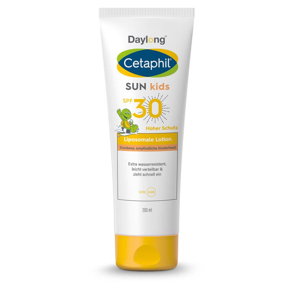 Kinderhaut ist besonders empfindlich gegenüber UV-Strahlung. Schon fünf Sonnenbrände während der Kindheit können das Hautkrebsrisiko um 70-80% erhöhen1, die Folgen machen sich oft erst viele Jahre später bemerkbar. Cetaphil® steht für hochwertige dermatologische Pflege für jeden Hauttyp. Die Cetaphil Sun Kids liposomale Lotion SPF 30 ist speziell für die besonderen Ansprüche von empfindlicher Baby- und Kinderhaut entwickelt und pflegt mit Dexpanthenol und Glycerin. Zusätzlich sind beruhigende Aloe Vera und Vitamin E enthalten. Photostabile UV-Filter bieten hochwirksamen und sofortigen UVA- und UVB-Schutz , effektiven Zellschutz3 und beugen sonnenbedingter Hautalterung vor.