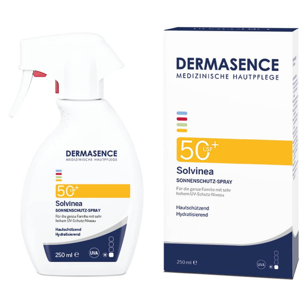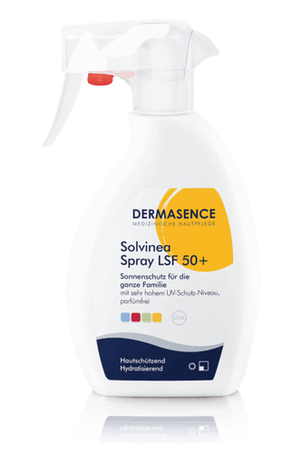 Das DERMASENCE Solvinea Spray LSF 50+ bietet sehr hohen UV-Schutz für die ganze Familie, wurde speziell an die Bedürfnisse empfindlicher Haut angepasst und schützt sie auch in tieferen Schichten. Das leichte Spray ist für jeden Hauttyp geeignet und dank der praktischen Sprühflasche perfekt in der Anwendung. Es wirkt mit einem sehr hohen Breitbandschutz vor UV-A- und UV-B-Strahlen. Zusätzlich schützt das Spray mit Tocopherol auch vor den Auswirkungen freier Radikale, die durch UV- und hochenergetisches sichtbares Licht entstehen. Die extraleichte Textur lässt sich gut verteilen, zieht sehr schnell ein, ohne zu kleben oder zu weißeln. Durch die parfümfreie, nicht komedogene Formulierung ist sie noch hautverträglicher.