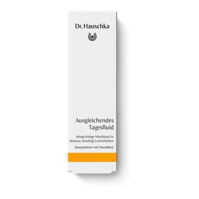 Das Ausgleichende Tagesfluid bringt Mischhaut, die zu glänzender T-Zone und leicht trockenem Wangenbereich neigt, ins Gleichgewicht. Die zart fließende Textur reguliert unreine Haut und schenkt ihr langanhaltend Feuchtigkeit. Die Komposition mit hochwertigen pflanzlichen Auszügen und Ölen reguliert nachfettende Hautpartien, beruhigt Unreinheiten und reduziert Spannungsgefühle. Wertvolle Auszüge aus Wundklee, Schachtelhalm und Kapuzinerkresse geben der Haut eine klarere Struktur und schenken ein reineres Hautbild.