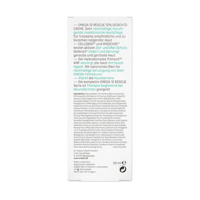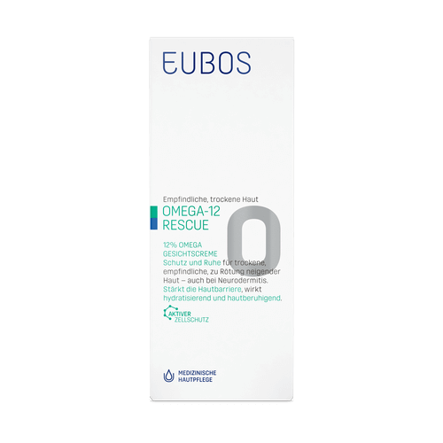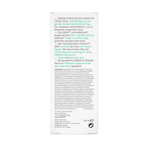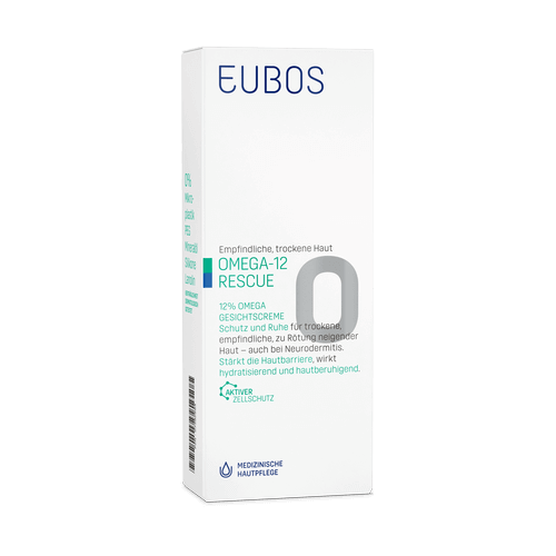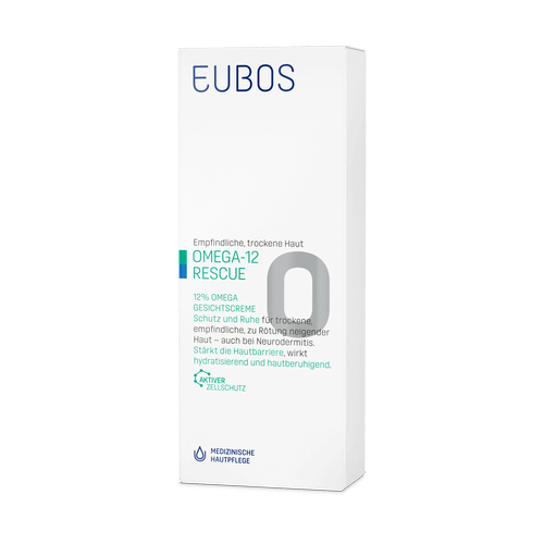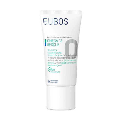 EUBOS OMEGA-12 RESCUE 12% GESICHTSCREME. Sehr reichhaltige, beruhigende, medizinische Hautpflege. Für trockene, empfindliche und zu Ekzemen neigende Haut