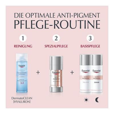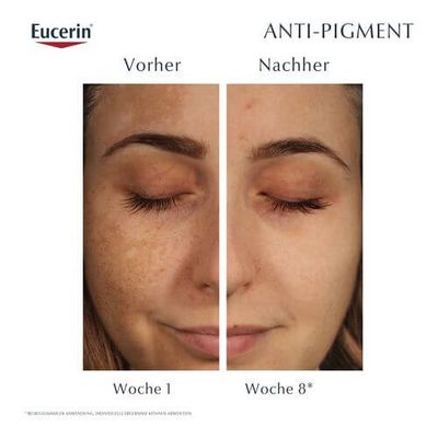 Die Eucerin Anti-Pigment Tagespflege LSF 30 mit leichter, schnell einziehender Textur hilft wirksam bei Pigmentflecken und sogenannte Altersflecken. Der patentierte Wirkstoff Thiamidol® wirkt effektiv am Ursprung von Pigmentflecken und trägt bei regelmäßiger Anwendung sichtbar zu deren Milderung bei. Zusätzlich schützt die Hautpflege durch den enthaltenen LSF 30 vor der Entstehung neuer Flecken. Der Haut wird so ein strahlenderes Aussehen und ein ebenmäßigerer Hautton verliehen.