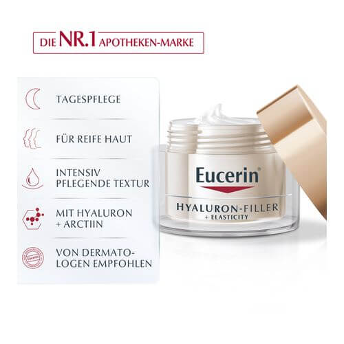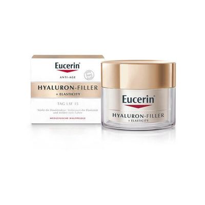 Eucerin ELASTICITY+FILLER Tagespflege beinhaltet darüber hinaus LSF 15 und einen UVA-Filter für zusätzlichen Schutz vor UV-Strahlung, welche Falten vertiefen und lichtbedingte Hautalterung beschleunigen kann.