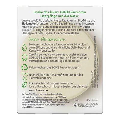 Unsere sorgfältig ausbalancierte Rezeptur mit Bio-Minze und Bio-Limette ist speziell auf die Bedürfnisse schnell fettender Haare abgestimmt und reinigt besonders intensiv. Dabei schenkt sie langanhaltende Frische und hilft, das natürliche Gleichgewicht der Kopfhaut wiederherzustellen. Das feste Shampoo ist je nach Haarlänge und Anwendungsgewohnheit dreimal ergiebiger als Flüssigshampoo.