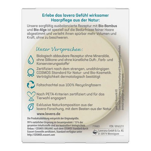 Die sorgfältig ausbalancierte Rezeptur mit Bio-Bambus und Bio-Alge ist speziell auf die Bedürfnisse feiner Haare abgestimmt und verleiht ihnen spürbar mehr Volumen und Kraft, ohne zu beschweren.