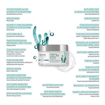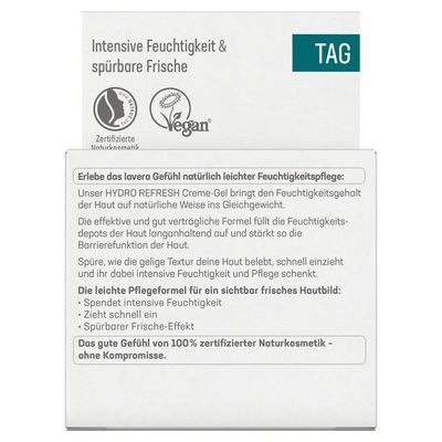Auf die gereinigte Haut auftragen und sanft einmassieren. Für ein optimales Ergebnis, verwende auch die anderen Produkte aus der lavera  Hydro Refresh Pflegelinie.