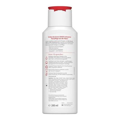 Spülung im gewaschenen, feuchten Haar in den Haarlängen einmassieren und kurz einwirken lassen. Danach gründlich mit Wasser ausspülen.