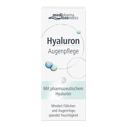 Die Hyaluron Augenpflege von medipharma cosmetics versorgt die trockene, empfindliche Haut um die Augen mit Feuchtigkeit. Feine Fältchen werden geglättet, Augenringe und -schwellungen gemindert.