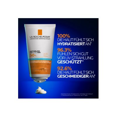 Die ANTHELIOS UV Mune 400 Hydratisierende Gesicht + Körper Milch LSF 50+ von La Roche Posay vor dem Aufenthalt in der Sonne großzügig auf die Haut von Gesicht und Körper auftragen und sanft einmassieren. Um den sehr hohen Sonnenschutz aufrechtzuerhalten, sollte die Sonnenmilch zwischendurch regelmäßig erneut aufgetragen werden, vor allem nach dem Baden, Schwitzen oder Abtrocknen. Zudem kann die Sonnenmilch auch als täglicher Sonnenschutz für das Gesicht verwendet werden, um die Hautpflegeroutine am Morgen abzuschließen.