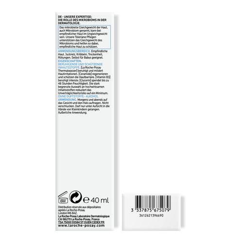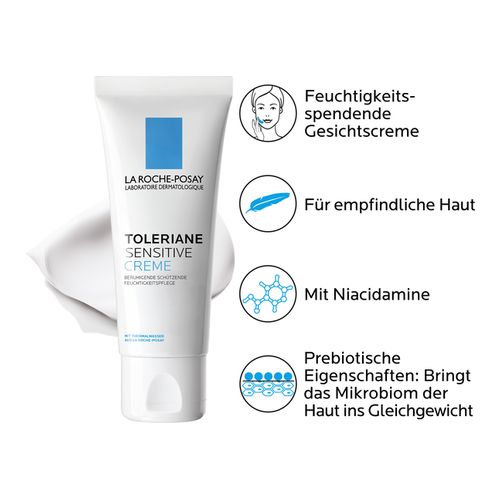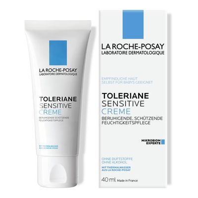 TOLERIANE SENSITIVE CREME von La Roche-Posay ist eine dermatologisch getestete Feuchtigkeitspflege, die mit ihrer prebiotischen Formel das Mikrobiom der Haut reguliert und die natürliche Widerstandskraft empfindlicher Haut stärkt. Die Zusammensetzung der Formulierung aus besonderen Inhaltsstoffen wie prebiotischem Thermalwasser aus La Roche-Posay, Niacinamid, Glycerin und Ceramiden ermöglichen eine 48 Stunden anhaltende, intensive Feuchtigkeitspflege. Hautirritationen sowie Rötungen werden gemildert und das Hauptbild verfeinert. Langfristig gesehen wird die natürliche Schutzbarriere Ihrer Haut repariert sowie merklich verbessert.