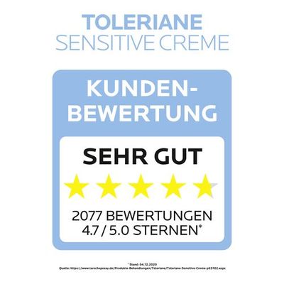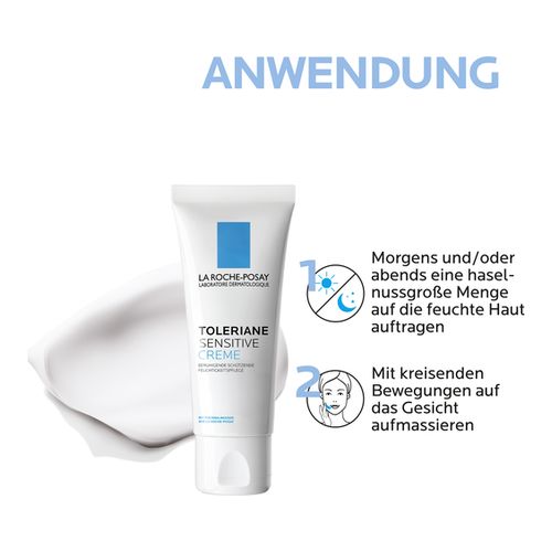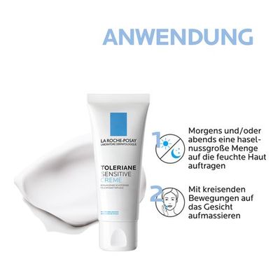 Tragen Sie die Creme morgens und abends auf das gereinigte Gesicht und den Hals auf. Aufgrund der Zusammensetzung aus leicht verträglichen Inhaltsstoffen eignet sich die TOLERIANE SENSITIVE CREME sogar für die Pflege empfindlicher Babyhaut. Ihre optimale Wirkkraft entfaltet sie bei einer täglichen Anwendung.