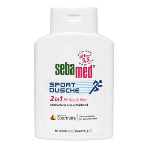 sebamed Sportdusche 2 in 1 für Haut & Haar reinigt Haut und Haar schonend, pflegt Haar und Kopfhaut intensiv und erfrischt und vitalisiert. Auch bei intensivem Training und häufigem Duschen bleibt die Haut spürbar gepflegt. Der hauteigene pH-Wert 5,5 fördert optimal die Funktion des natürlichen Hautschutzmantels – Haut und Kopfhaut bleiben gesund. Von Dermatologen und deutschen Spitzensportlern empfohlen.