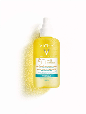 Das VICHY Capital Soleil Sonnenspray mit Hyaluron LSF 50 ist in eine feuchtigkeitsspendene Sonnenpfege. Die ultra-leichte Textur wirkt maximal erfrischend. Die Innovation enthält natürliches Hyaluron und bewirkt eine intensive Feuchtigkeitsversorgung der Haut. Die Sonnenpflege ist für Körper, sowie Gesicht anwendbar, und ist auch für empfindliche Haut geeignet.