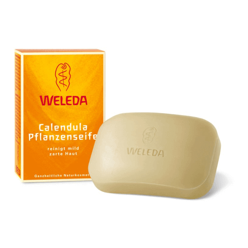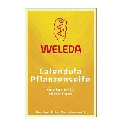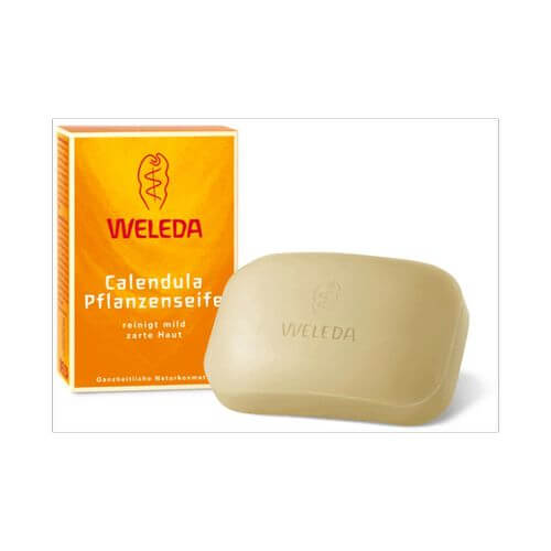 Die Weleda Calendula-Pflanzenseife enthält Auszüge aus Calendula- und Kamillenblüten und eignet sich wegen ihrer mild pflegenden Wirkung und ihrem feinen Duft besonders für zarte und empfindliche Babyhaut. Sie ist jedoch auch sehr gut für sensible Erwachsenenhaut und z.B. auch für häufiges Händewaschen geeignet.