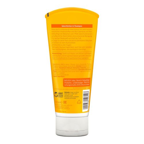 Sesamöl aus kontrolliert-biologischem Anbau und wertvolles Mandelöl halten die Feuchtigkeit in der Haut, schützen vor dem Austrocknen und sorgen für ein seidig-zartes Haut- und Haargefühl. Milde Waschsubstanzen auf pflanzlicher Basis reinigen Haut und Haare besonders schonend und sind extra mild zu den Augen. Ein Heilpflanzenauszug aus kontrolliert-biologisch angebauter Calendula beruhigt die Haut. Sorgfältig ausgewählte Pflegesubstanzen aus der Natur machen das Haar leicht kämmbar. Weleda Calendula Waschlotion & Shampoo ist seifenfrei und eignet sich auch ideal für Erwachsene mit empfindlicher Haut.