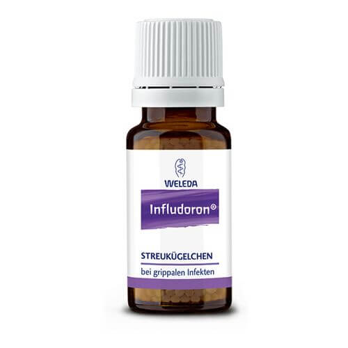Die Infludoron® Streukügelchen eignen sich schon ab dem Säuglingsalter zur Behandlung eines grippalen Infekts und sind somit bei fieberhaften Erkältungen für die ganze Familie geeignet. Werden sie gleich bei den ersten Anzeichen eingenommen, können Infludoron® Streukügelchen den Ausbruch einer Erkältung oft noch verhindern oder abmildern. Ist die Erkältung da, mit Symptomen wie Fieber, Abgeschlagenheit und Gliederschmerzen, unterstützt die Kombination aus Eisenphosphat und ausgewählten Pflanzenzubereitungen die Selbstheilungskräfte und lindert die Beschwerden. Eisenhut beruhigt bei Fieber und erkältungsbedingten Schmerzen. Eisenphosphat wirkt ordnend auf entzündliche Reaktionen in den Atemwegen. Zaunrübe und Wasserdost strukturieren den Stoffwechsel und regulieren eine vermehrte Schleimbildung.