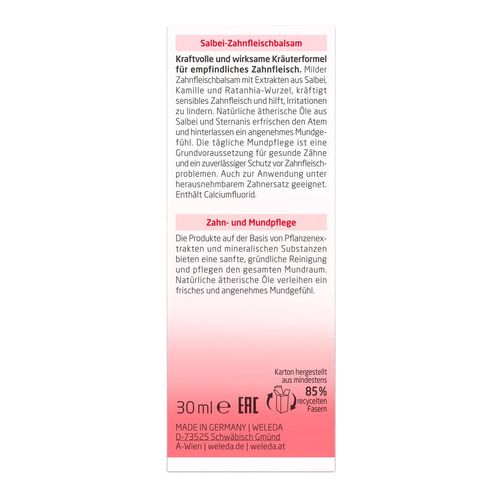 Der milde Salbei-Zahnfleischbalsam ist ein ganzheitliches Pflegegel zur Kräftigung des Zahnfleisches. Er macht das Zahnfleisch widerstandsfähiger und beugt so Blutungen und Entzündungen vor. Auszüge aus Salbei und Kamille, welche als traditionelle Hausmittel in der Mundraumbehandlung gelten, unterstützen die Regeneration und Heilung von empfindlichem Zahnfleisch.