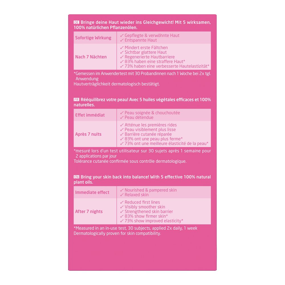 • Mit 5 wirksamen, 100% natürlichen Pflanzenölen für eine sichtbar glattere Haut