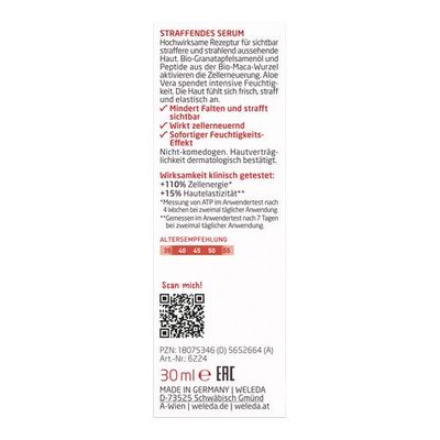 Bio-Granatapfelsamenöl und Peptide aus Bio-Maca-Wurzel aktivieren die Zellerneuerung. Für ein frisches und straffes Hautgefühl. Verbessert die Spannkraft der Haut.